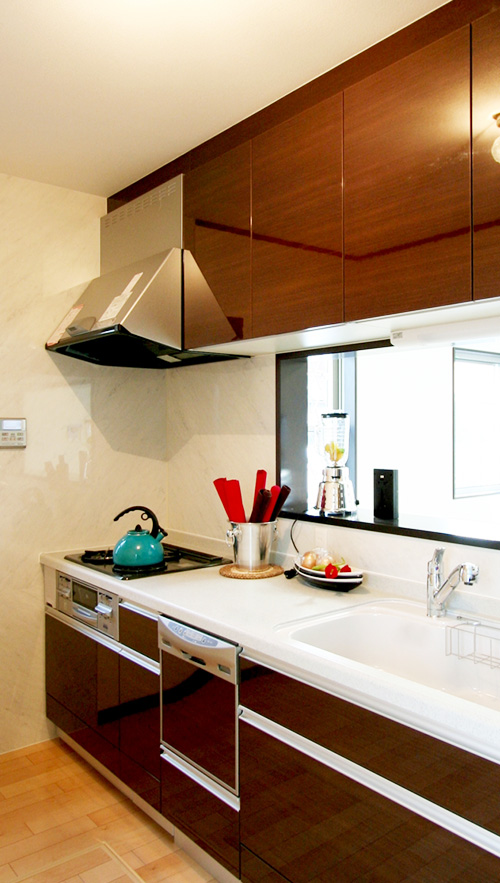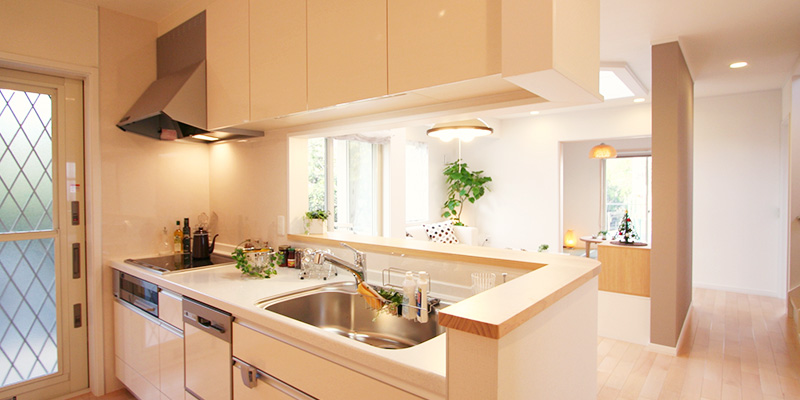 “火”を扱う場所になりますので、キッチンを取り付ける周囲などに耐熱材などをはり、キッチンもその周りも、長く快適に使って頂けるように施工いたします。